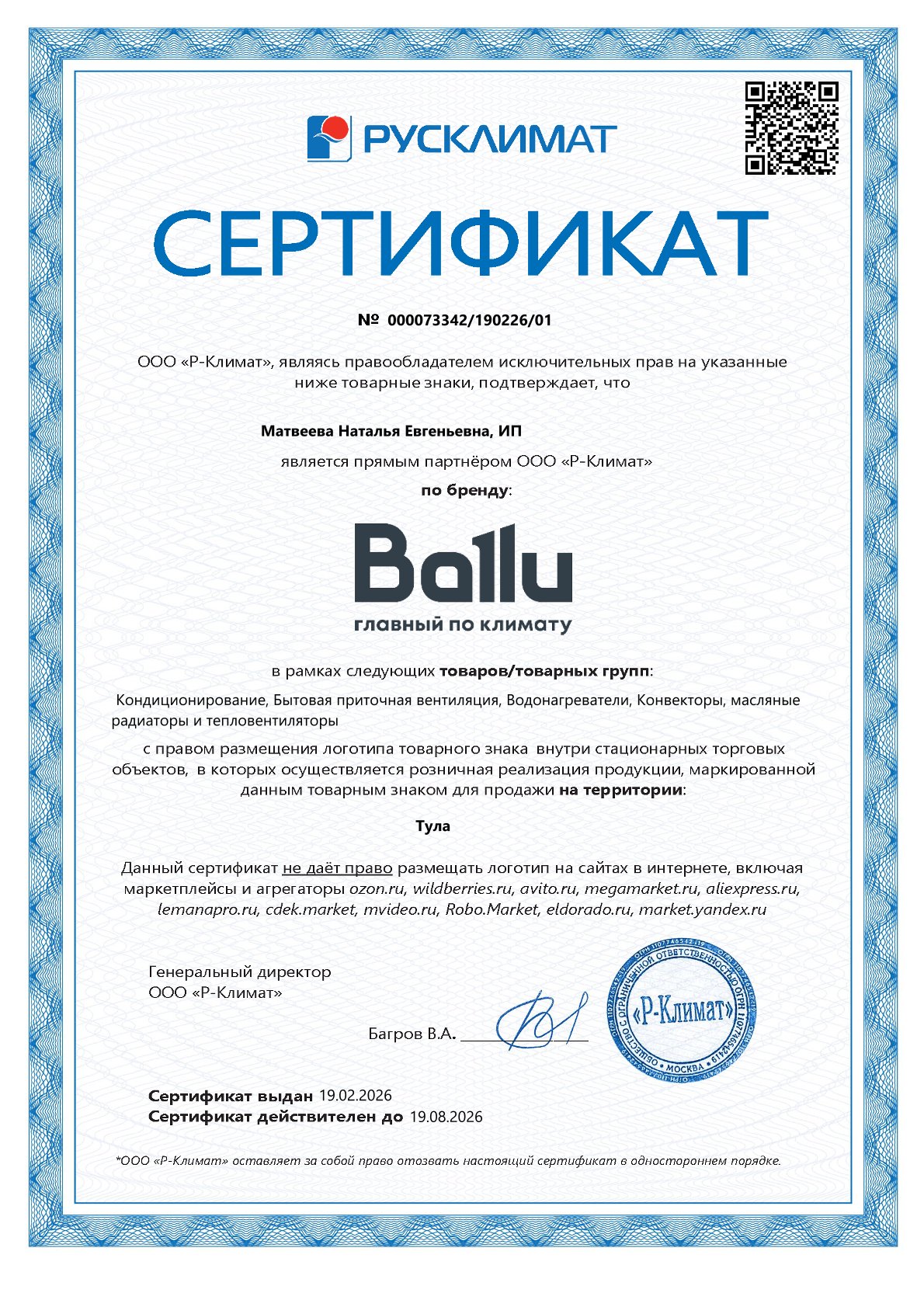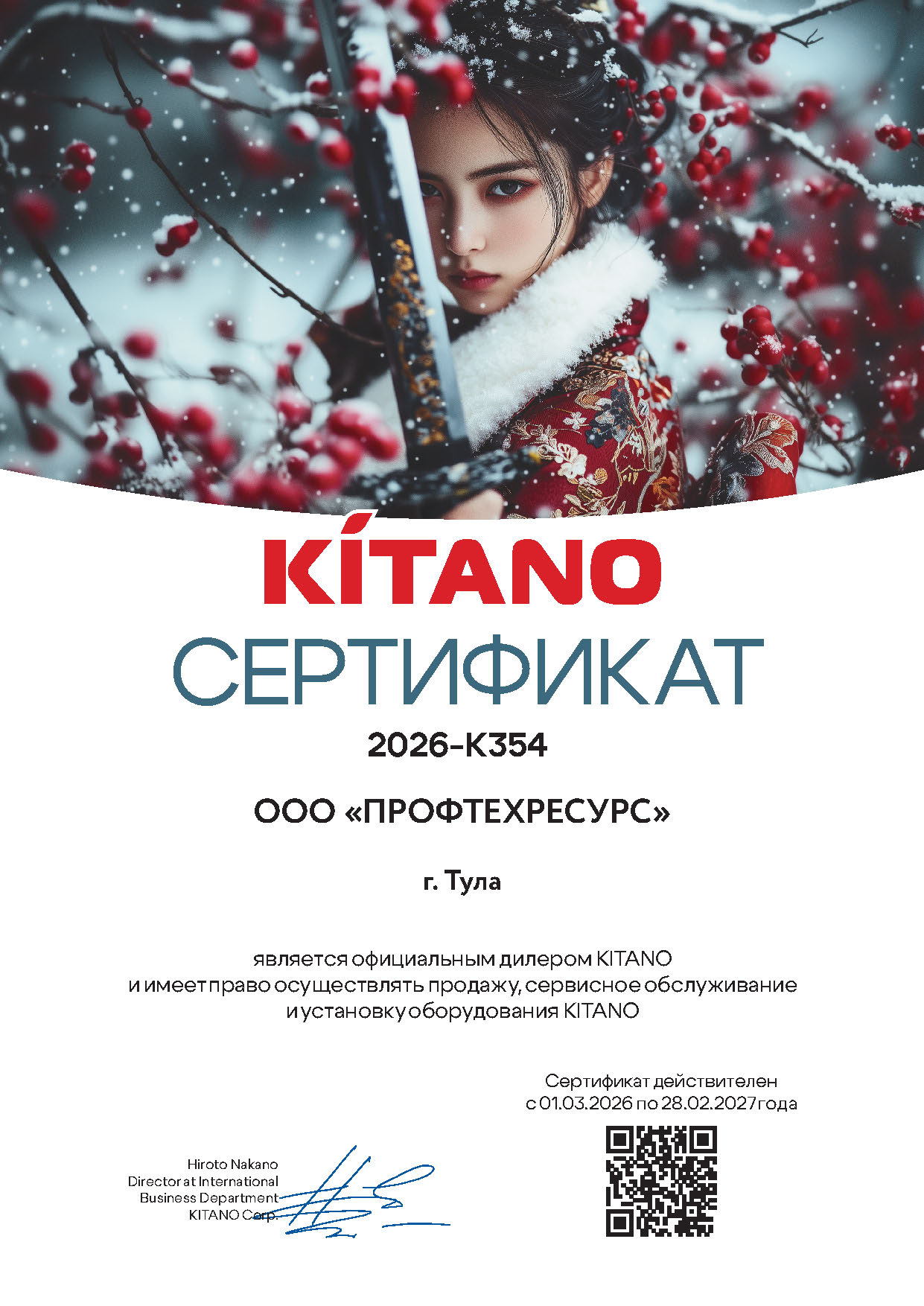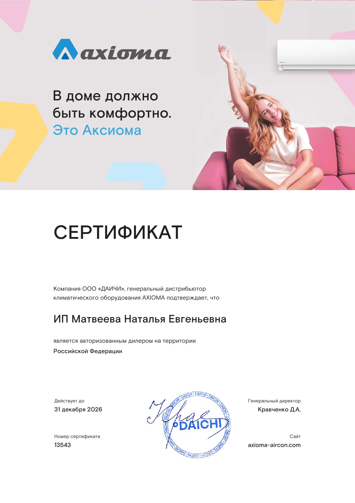 Сертификаты подтверждающие статус официального дилера на 2026 год.