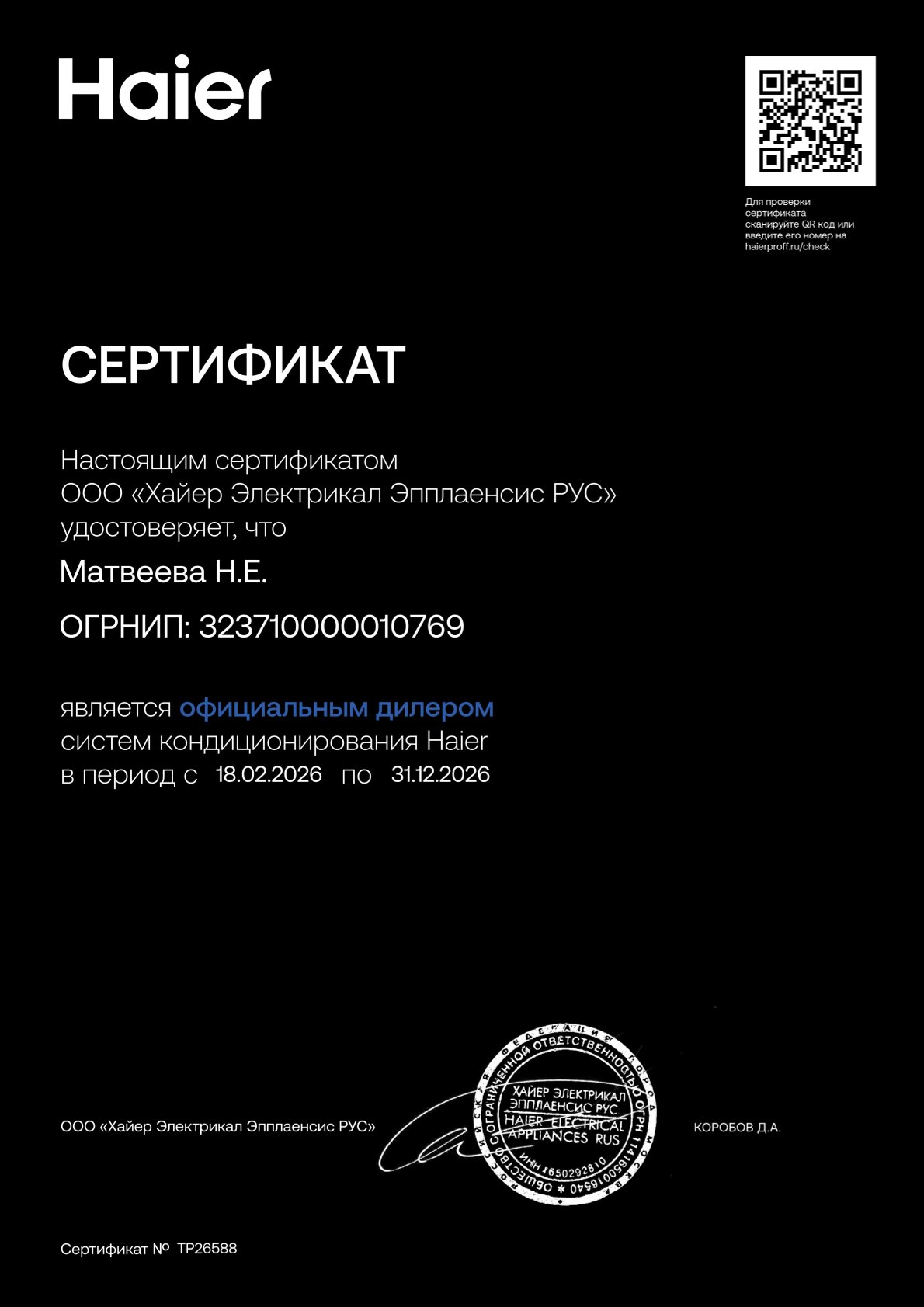 - Кондиционирование:BALLU, Hisense, Royal Clima, GREE, HAIER, Daikin, Midea, Daichi, MDV, Mitsubishi Heavy, Panasonic, Electrolux и Hitachi.