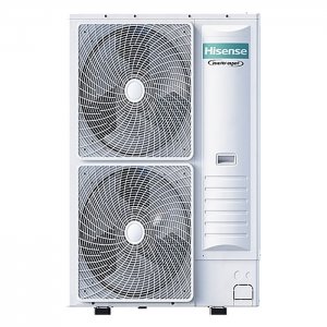 Кассетный кондиционер HISENSE AUC-60UR4RKC8/PE-QFA/CD/AUW-60U6RW8 серии HEAVY EU DC Inverter R32 обладает мощностью 160 кВт, способен охладить помещение площадью до 160 м2 и уровнем шума внутреннего блока 48 дБ.