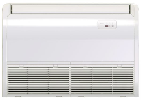 Напольно-потолочный кондиционер HISENSE AUV-48HR4SC/AUW-48H6SE1 серии HEAVY CLASSIC установлен ротационный компрессор мощностью 14.0 кВт, который способен охладить или обогреть помещение площадью до 140 м2. Уровень шума внутреннего блока 50 дБ.