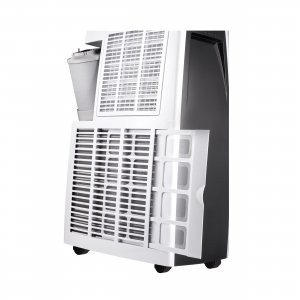 Функция автоматического удаления конденсата образующаяся влага не собирается в поддоне, а испаряется горячим воздухом через теплообменник и выводится наружу через воздуховод. Это избавляет от необходимости вручную сливать воду каждые 8-12 часов, повышая удобство эксплуатации прибора.