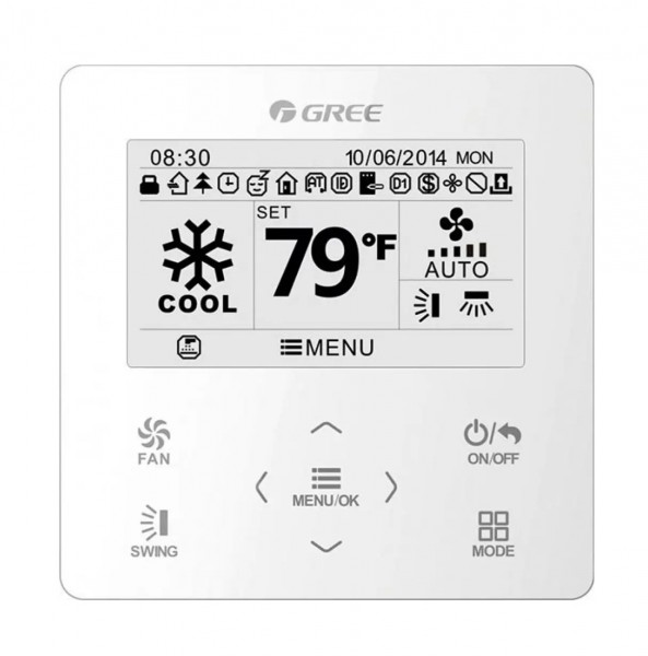 Совместимость: пульт совместим с различными бытовыми и полупромышленными сплит-системами и мультисплит-системами GREE, имеющими соответствующий разъем для подключения проводного контроллера.