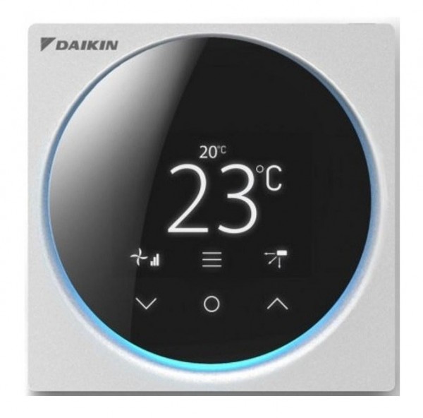Проводной дизайнерский настенный пульт DAIKIN BRC1H52S предназначен для интуитивного контроля систем кондиционирования Daikin Sky Air и VRV. Он отличается компактными размерами (85x85 мм), элегантным белым цветом и возможностью управления через приложение на смартфоне.