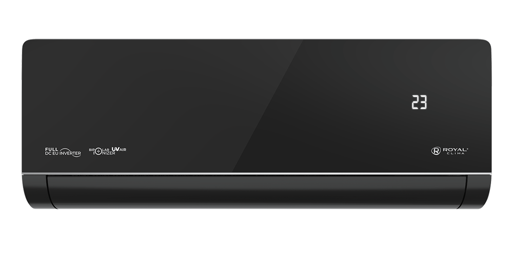 Сплит-система ROYAL CLIMA RCI-RSN55HN серии SUPREMO NERO Full DC EU Inverter обладает мощностью 5.5 кВт, способна охладить помещение площадью до 50 м2 и уровнем шума внутреннего блока 23 дБ.