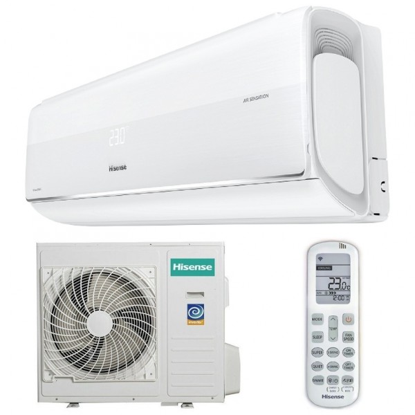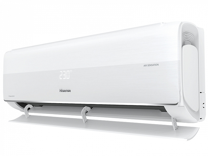 Сплит-система HISENSE AS-10UW4RXVQF00 серии AIR SENSATION Superior DC Inverter обладает мощностью 2.6 кВт, способна охладить помещение площадью до 25 м2 и уровнем шума внутреннего блока 18 дБ.