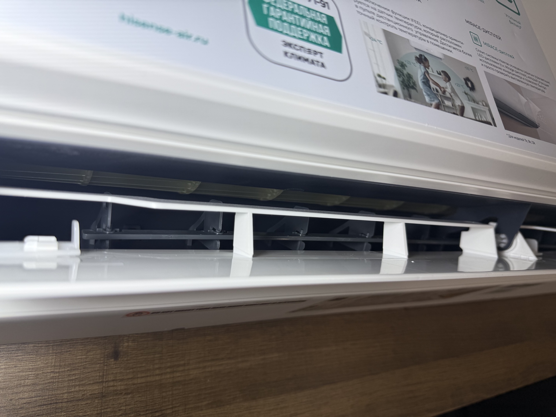 Стильный MIRAGE-дисплей на передней панели внутреннего блока органично вписывается в дизайн корпуса и при выключенном состоянии практически невидим, а при работе отображает текущие настройки температуры и режимы работы, добавляя современный акцент в интерьер.