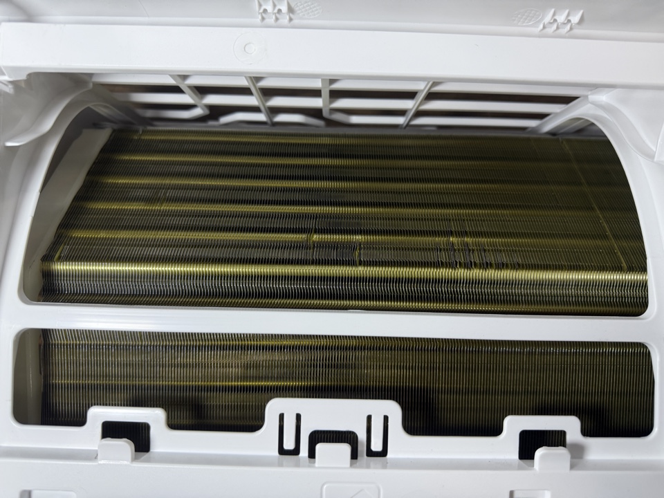 Внутреннее антикоррозионное покрытие теплообменника Golden Fin (это инновационное антикоррозийное покрытие теплообменников кондиционеров, состоящее из нескольких слоев, включая эпоксидную смолу и частицы золота. Оно защищает алюминиевые ребра от коррозии, влаги, солей и кислот, значительно увеличивая срок службы оборудования, улучшая теплообмен и повышая производительность).