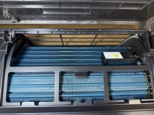 Фильтр предварительной очистки воздуха (это обязательный элемент любого кондиционера, представляющий собой мелкоячеистую нейлоновую или металлическую сетку в пластиковой рамке. Он задерживает крупные частицы (пыль, шерсть, пух), защищая внутренние узлы (испаритель, вентилятор) от загрязнения. Требует регулярной мойки или чистки пылесосом (раз в 2-4 недели)).