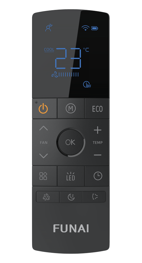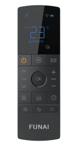 SMART Feel: Интеллектуальный датчик температуры, встроенный в пульт дистанционного управления. Кондиционер ориентируется на температуру в том месте, где находится пульт, а не на ту, что возле внутреннего блока, создавая комфорт именно в вашей локальной зоне.