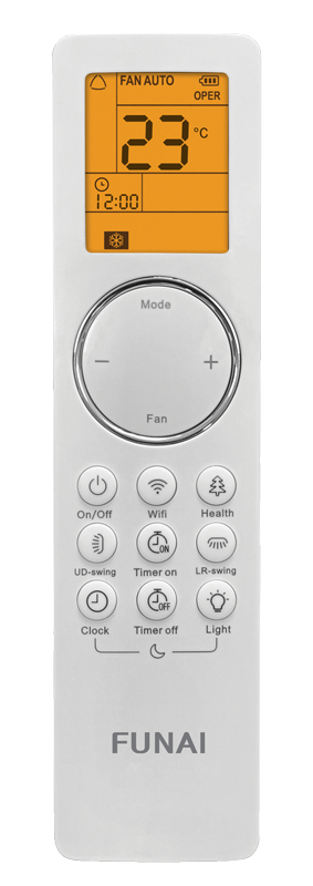Премиальный пульт дистанционного управления с подсветкой оснащен интуитивно понятным интерфейсом, крупными кнопками и мягкой подсветкой, что позволяет легко настраивать все параметры даже в полной темноте.