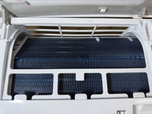 Фильтр предварительной очистки воздуха (это обязательный элемент любого кондиционера, представляющий собой мелкоячеистую нейлоновую или металлическую сетку в пластиковой рамке. Он задерживает крупные частицы (пыль, шерсть, пух), защищая внутренние узлы (испаритель, вентилятор) от загрязнения. Требует регулярной мойки или чистки пылесосом (раз в 2-4 недели)).