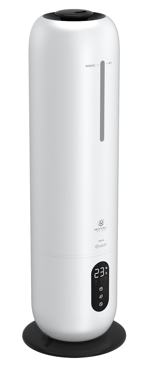 Увлажнитель воздуха ROYAL CLIMA RUH-RV300/8.0E-WT серии RIVA с максимальной производительностью 0,3 л/час объемом бака 8 л предназначен для поддержания комфортного уровня влажности в помещении до 30 м2.