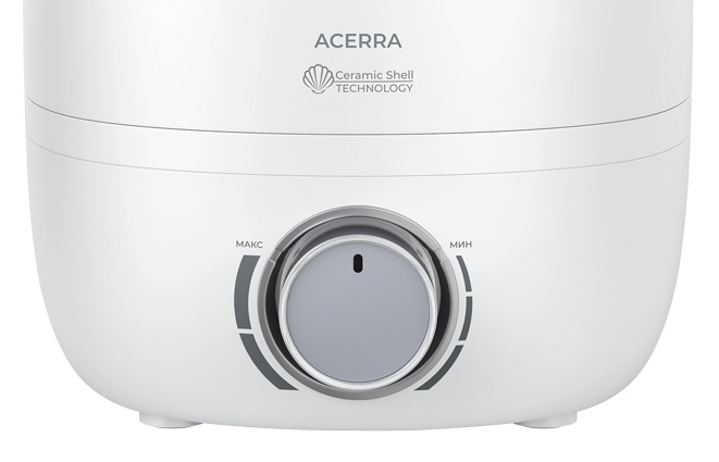 Механическая панель управления с плавной (бесступенчатой) регулировкой интенсивности выхода пара. Интенсивность увлажнения регулируется при помощи специального роторного переключателя (регулятора мощности), который обеспечивает плавную настройку скорости выхода пара в широком диапазоне, а не ступенчатую.