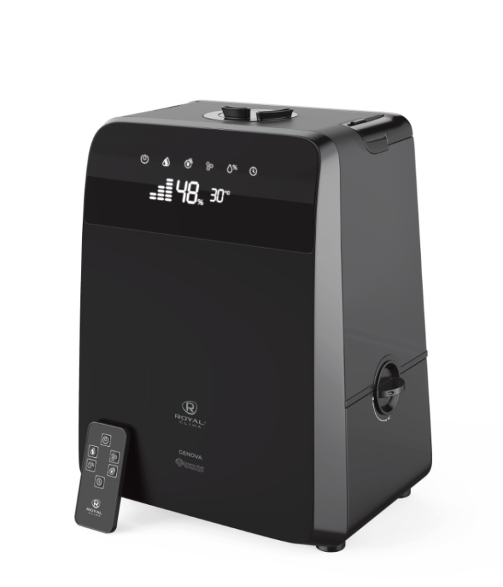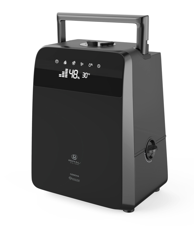 Увлажнитель воздуха ROYAL CLIMA RUH-G450/5.5E-BL серии GENOVA с максимальной производительностью 0,45 л/час объемом бака 5,5 л предназначен для поддержания комфортного уровня влажности в помещении до 45 м2.