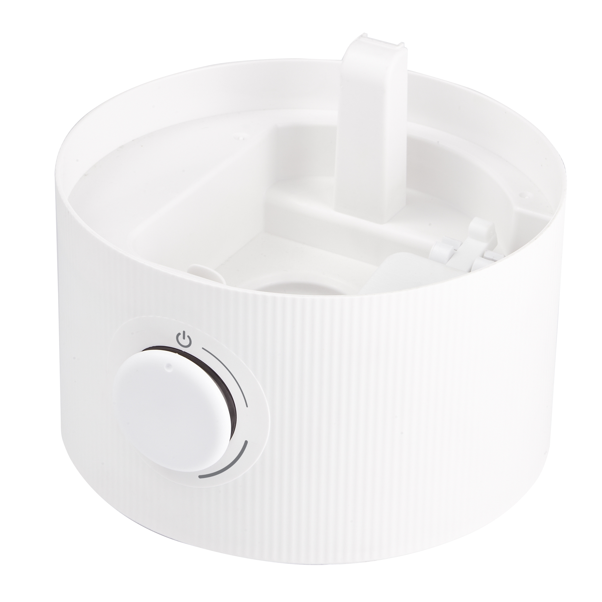 Увлажнитель воздуха оснащен механическим типом управления. Регулировка интенсивности увлажнения осуществляется с помощью удобной поворотной ручки на передней панели, обеспечивая интуитивно понятное переключение скоростей работы.