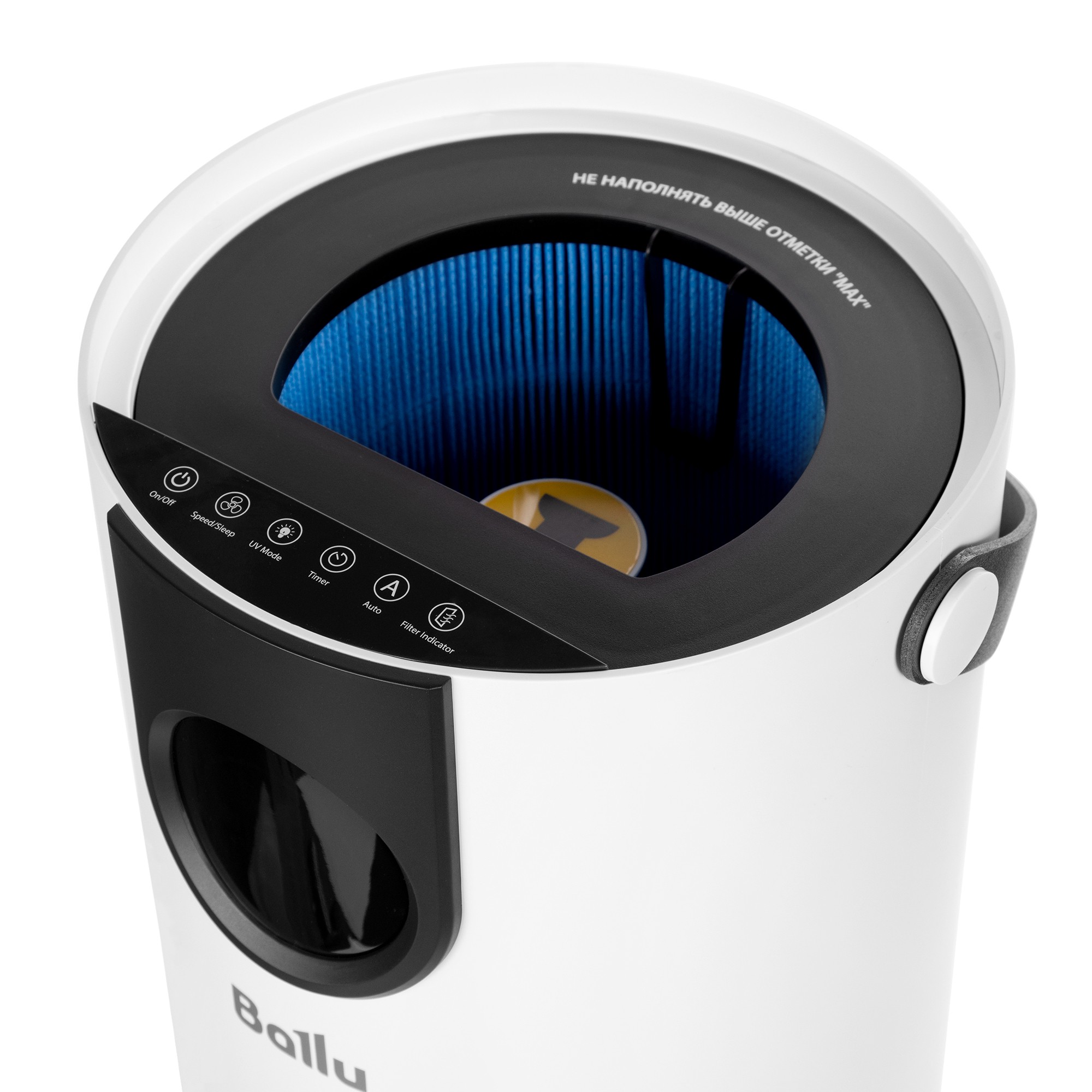 Климатический комплекс Ballu AW-500 максимальная производительность 450 м3/час эффективное устройство, совмещающее традиционное увлажнение без налета и 4-этапную очистку воздуха (Pre-фильтр, HEPA, угольный, фотокаталитический) с UV-обработкой для помещений до 60 м² с объемом бака 5л.