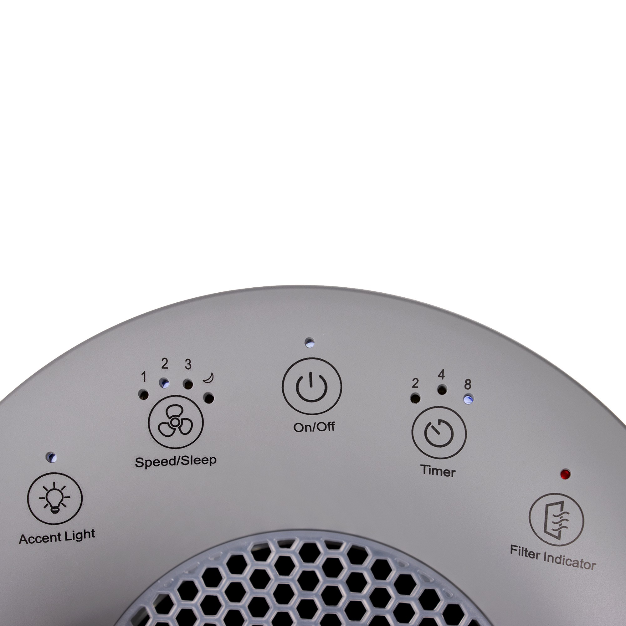 Сенсорная панель управления, расположенная в верхней части устройства, позволяет легко выбирать одну из 3 скоростей работы, настраивать таймер на 2, 4 или 8 часов и включать ночной режим. Также сенсорная панель включает индикаторы работы и замены фильтра.