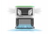 Очищенный воздух выходит обратно в помещение по периметру основания корпуса, скользя по полу и поверхностям мебели, он равномерно распределяется по помещению.