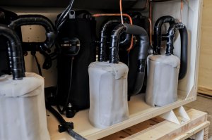 Горизонтальная установка: Необходимо строго соблюдать горизонтальность установки, чтобы обеспечить правильную работу двух компрессоров и дренажной системы .