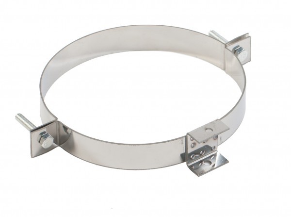 Хомут для телескопического кронштейна диаметром 210 мм изготовлен из нержавеющей стали марки AISI 430 толщиной 1.5 мм охватывает наружный диаметр элемента дымохода, а его конструкция позволяет соединяться с телескопической частью кронштейна для регулировки вылета от стены. Состоит из двух полукруглых частей с монтажными отверстиями затягивается посредством болтов и гаек, которые идут в комплекте. Подходит для элементов дымохода с диаметром 210 мм.