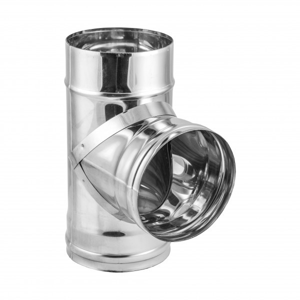 Одностенный тройник 90 градусов из нержавеющей стали диаметром 115 мм, толщиной 0.5 мм предназначен для изменения направления дымового канала, соединения горизонтального участка от котла/печи с вертикальным дымоходом. Он используется для отвода продуктов сгорания. Изготавливается из жаростойкой стали AISI 430, выдерживая высокие температуры.