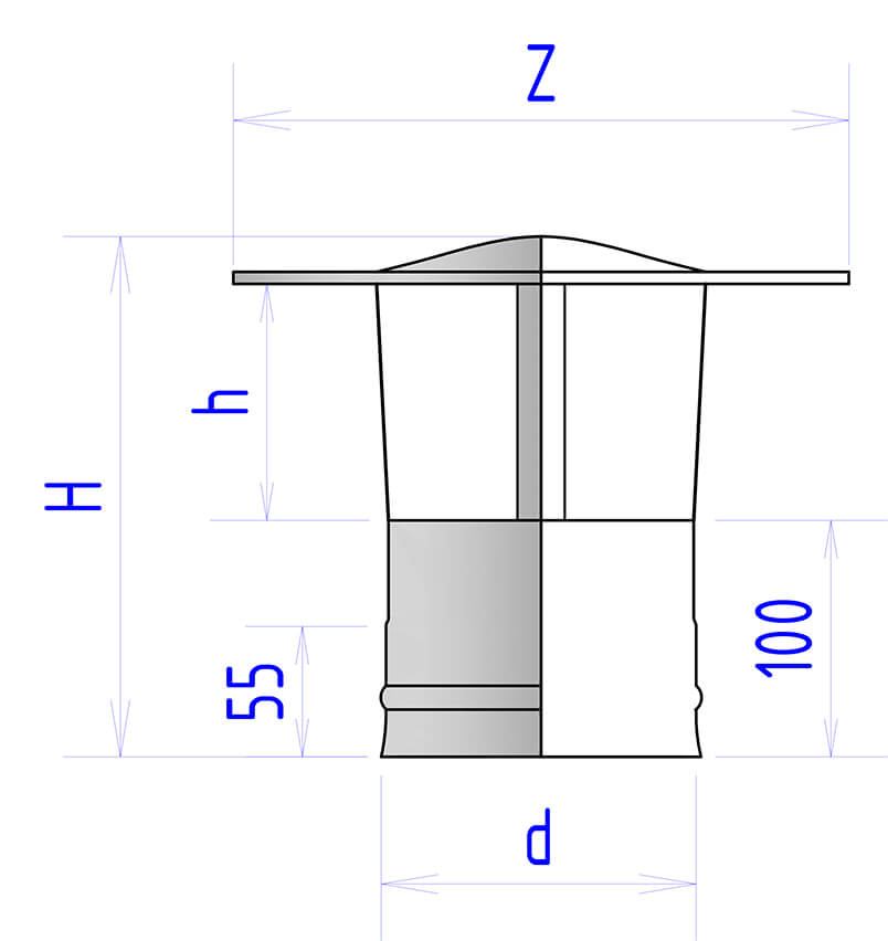 Зонт предотвращает попадание дождя, снега, листьев и веток в дымовой канал, что предотвращает закупорку, снижение тяги и улучшает КПД отопительного оборудования.
