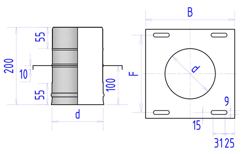 Опора служит основой для начала сборки дымохода, устанавливаясь на стены или перекрытия. Под опору обычно устанавливают опорные кронштейны, которые крепятся к стене.