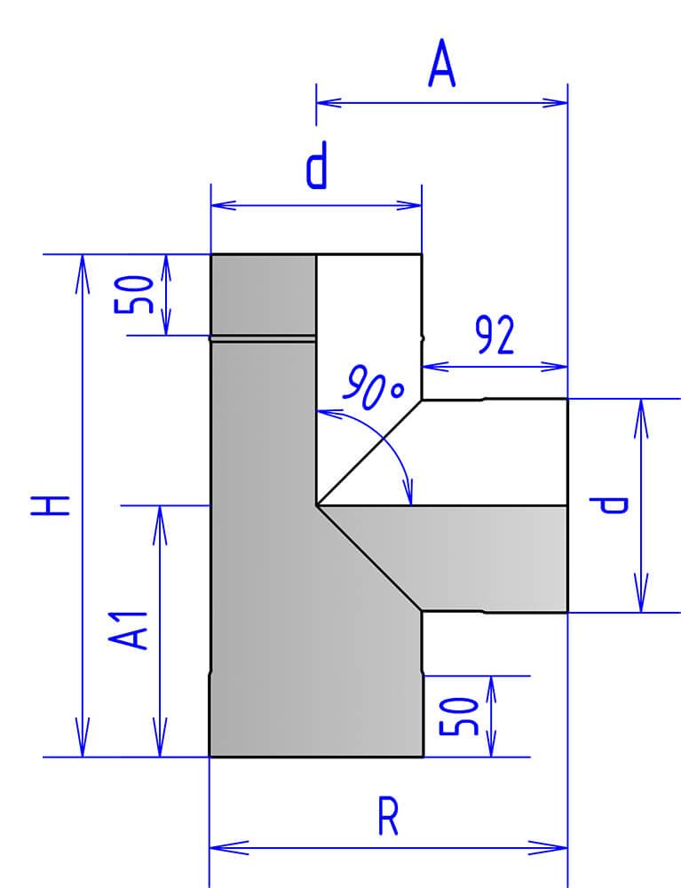 Одностенный тройник 90 градусов из нержавеющей стали диаметром 115 мм предназначен для изменения направления дымового канала, соединения горизонтального участка от котла/печи с вертикальным дымоходом. Он используется для отвода продуктов сгорания. Изготавливается из жаростойкой стали AISI 430, выдерживая высокие температуры.