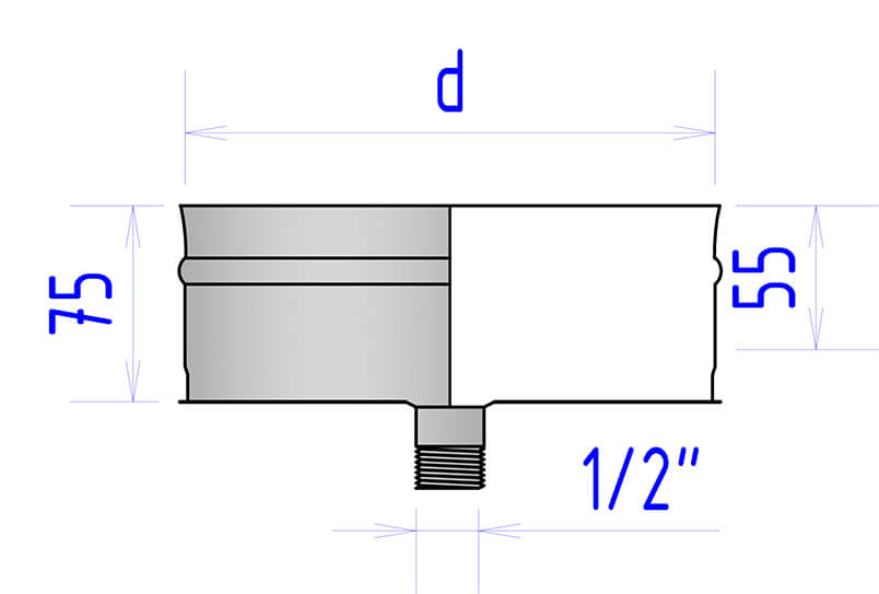 Конденсатосборник из нержавеющей стали диаметром 200 мм и толщиной 0.5 мм , маркой стали AISI430 элемент, устанавливаемый в нижней точке системы дымохода ( как правило в тройник или опору) для сбора и удаления влаги, образующейся при работе печей, каминов и котлов. Он предотвращает разрушение дымохода коррозией, улучшает тягу и исключает попадание воды в отопительный прибор, оснащён штуцером для отвода жидкости в канализацию или специальную емкость. Подходит для сборок дымоходов с толщиной стали 1 мм.