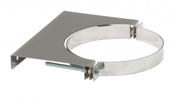 Крепление к стене для труб диаметром 180 мм изготовлено из нержавеющей стали AISI 430, элемент системы дымоходов предназначенный для обеспечения устойчивости и фиксации дымоходной трубы к стене здания. Оно состоит из опорной пластины и хомута, который обхватывает трубу по наружному диаметру.
