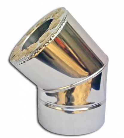 Сэндвич трубы из нержавеющей стали Угол 45 гр 120 / 200 мм (0,5 мм)