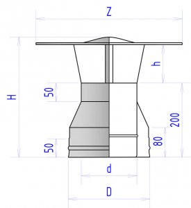 Зонт термоизолированный 2Z 180 / 240 мм из нержавеющей стали AISI430 так же известный как дымник, флюгарка, оголовок или колпак устанавливается в самой верхней точке дымохода. Он необходим для защиты шахты дымохода и внутреннего утеплителя от атмосферных осадков (дождя, снега), попадания мусора и птиц. Зонт предотвращает преждевременную коррозию и засорение дымохода, продлевая срок службы всей системы. Представляет собой двухстенный элемент, совместимый с дымоходами типа «сэндвич».