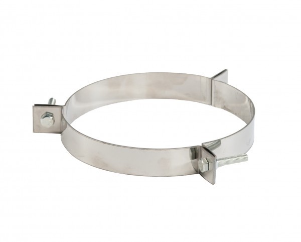 Хомут под растяжки ХР 130 / 200 мм из нержавеющей стали AISI 430 предназначен для фиксации и обеспечения устойчивости дымоходной трубы в вертикальном положении, если она возвышается над кровлей более чем на 1.5 метра. Он не является силовым элементом, а служит для крепления стальных тросов (растяжек), удерживающих трубу при сильных порывах ветра, предотвращая падение или деформацию дымохода.