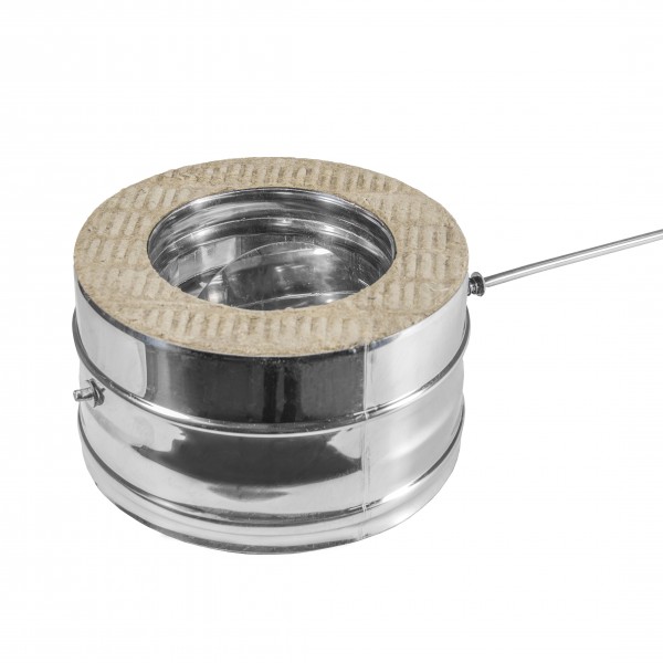 Шибер поворотный 2ШП 250 / 350 мм из нержавеющей стали AISI 430 элемент утепленного («сэндвич») дымохода, предназначенный для регулировки тяги и перекрытия дымового канала.