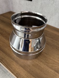 По дыму (сборка "по дыму"): Внутренняя труба перехода вставляется сверху в нижнюю, что исключает препятствия для дымовых газов. Применяется там, где влага не образуется (высокие температуры, печи).