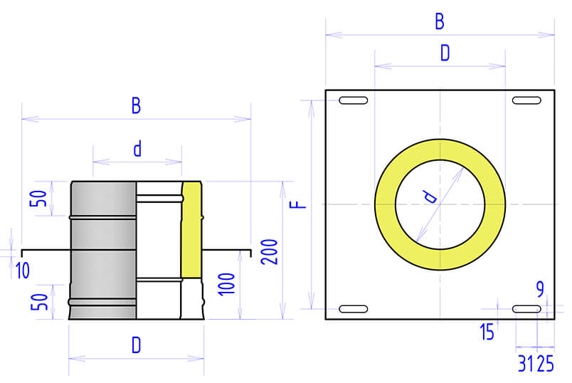 Опора 2О 250 / 310 мм из нержавеющей стали AISI 430 представляет собой утепленный (термо) силовой элемент, предназначенный для монтажа модульных сэндвич-дымоходов, который переносит вес вышерасположенной конструкции на междуэтажное перекрытие или при уличном монтаже дымохода на внешнюю (наружную) стену здания. Опора 2О рассчитана на нагрузку до 100 кг и рекомендуется к установке не реже, чем через каждые 5 метров высоты дымохода.