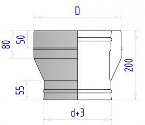 По дыму (сборка "по дыму"): Внутренняя труба перехода вставляется сверху в нижнюю, что исключает препятствия для дымовых газов. Применяется там, где влага не образуется (высокие температуры, печи).