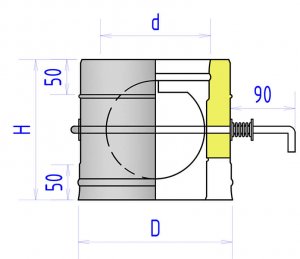 Шибер поворотный 2ШП 115 / 200 мм из нержавеющей стали AISI 430 элемент утепленного («сэндвич») дымохода, предназначенный для регулировки тяги и перекрытия дымового канала.