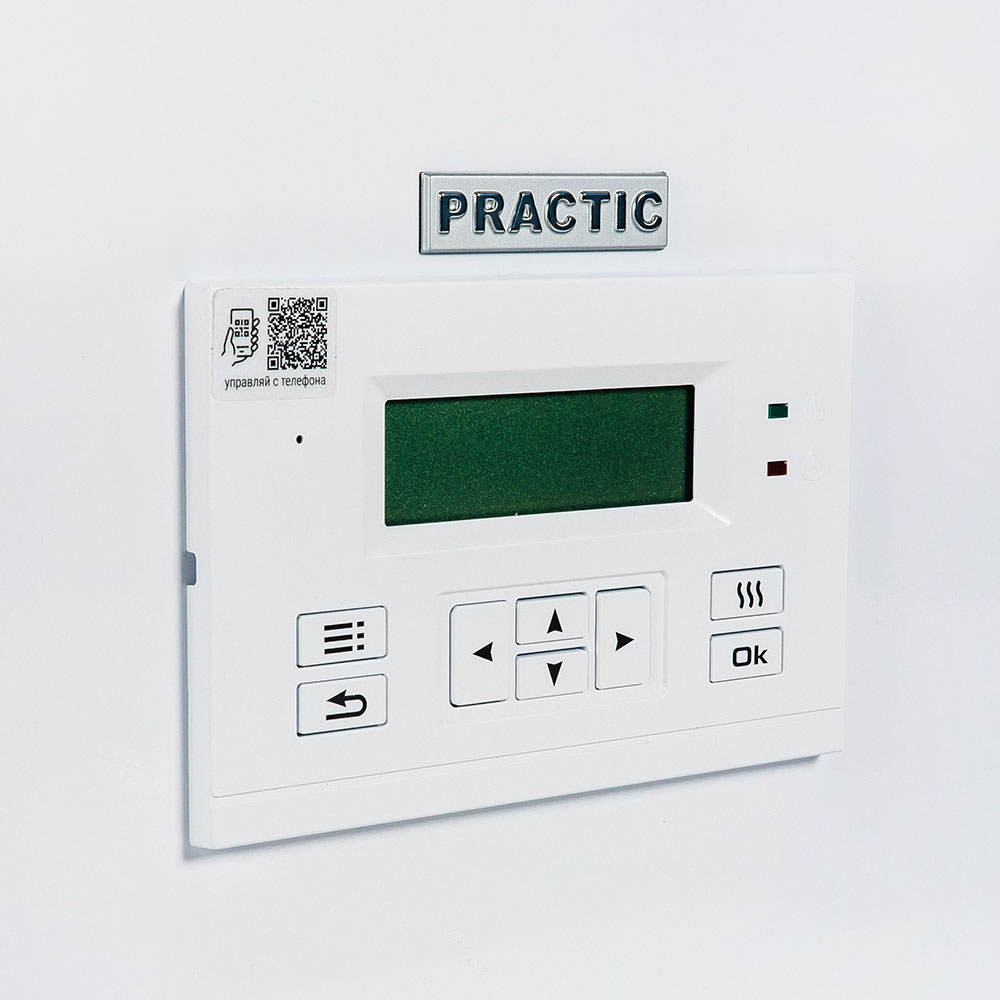 ЭВАН PRACTIC-22-42 — это мощный настенный электрокотел номинальной мощностью 42 кВт, представляющий собой интеллектуальный одноконтурный теплогенератор для систем водяного отопления . Модель относится к обновленной линейке «PRACTIC-22» класса «Комфорт» и является одной из самых мощных в этой серии. Она предназначена для отопления жилых, коммерческих и производственных помещений площадью до 420 м². В отличие от готовых мини-котельных, данный котел великолепно встроится в систему, где насос, расширительный бак и группа безопасности уже смонтированы, либо будут монтироваться в системе вне корпуса котла. Главные особенности модели — встроенный Wi-Fi, поддержка OpenTherm, наличие датчиков температуры в комплекте, три блока ТЭН из нержавеющей стали и высокая точность поддержания температуры.