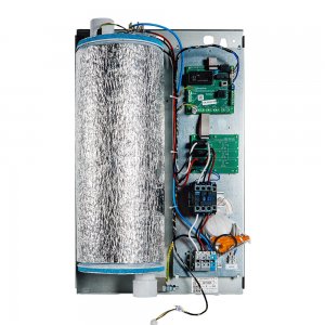 Шесть блоков ТЭН из нержавеющей стали: В котле установлены шесть блоков ТЭН, изготовленных из высококачественной коррозионно-стойкой стали. ТЭНы имеют оболочку из нержавеющей стали, оптимальную технологию герметизации и конструкцию, исключающую парообразование на границе с теплоносителем.
