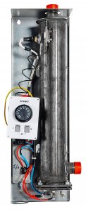 Качественные ТЭНы из нержавеющей стали: В котле используются надежные и долговечные трубчатые электронагреватели (ТЭН) из нержавеющей стали, что повышает срок их службы и устойчивость к коррозии. ТЭНы объединены в блочную конструкцию, что упрощает их замену в случае выхода из строя.