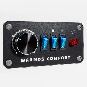 Механическое управление с наглядной схемой: На панели управления расположены клавиши для выбора ступени мощности и поворотная ручка термостата для установки желаемой температуры.