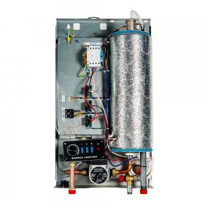 Надежные ТЭНы из нержавеющей стали: В котле используются нагревательные элементы из высококачественной нержавеющей стали, что гарантирует долговечность и устойчивость к коррозии. Для повышения ремонтопригодности изделия ТЭНы объединены в блоки.
