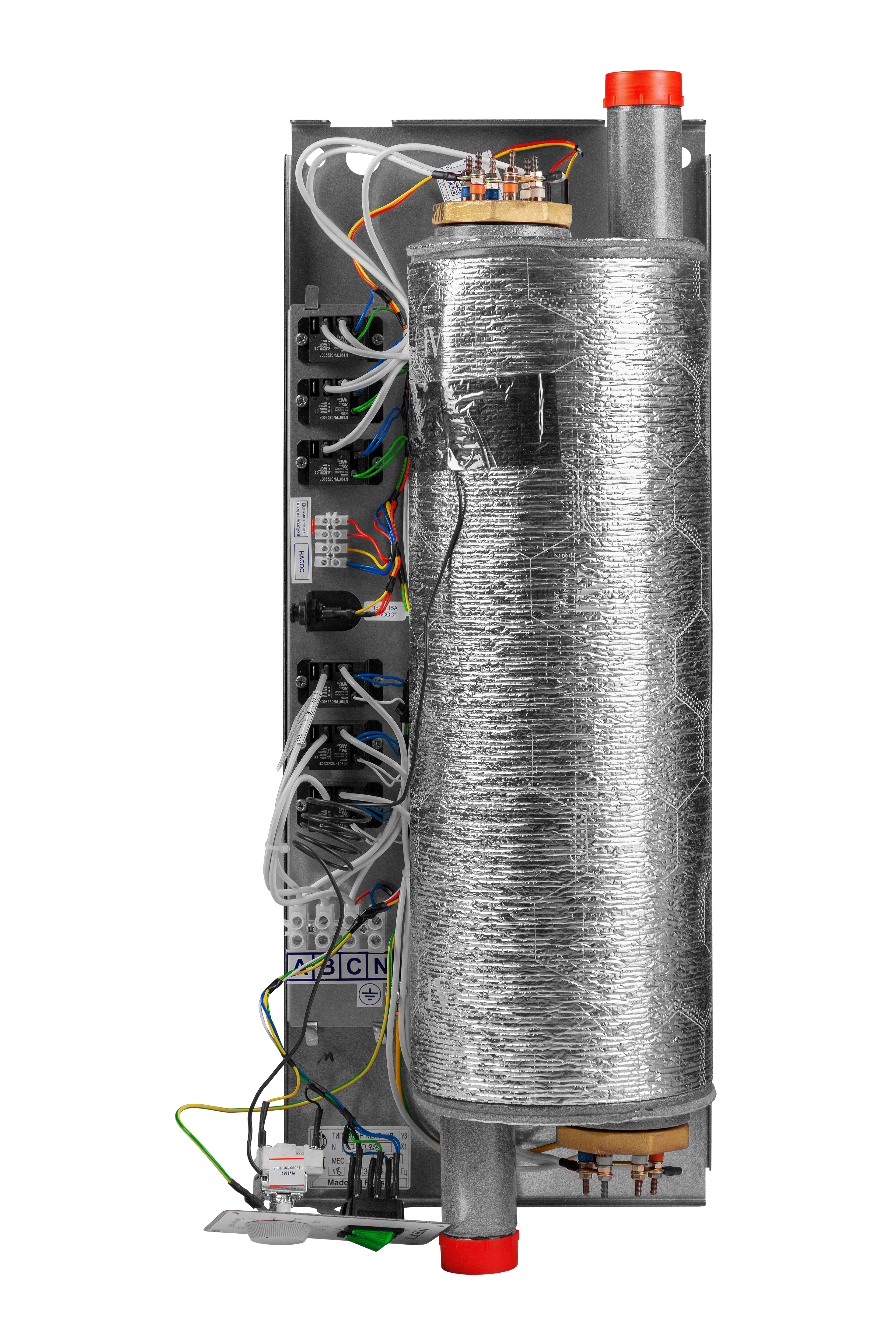 Теплоизолированный корпус: Корпус котла имеет теплоизоляцию, которая снижает теплопотери в окружающую среду и повышает общую энергоэффективность системы, а также предотвращает случайные ожоги при прикосновении.