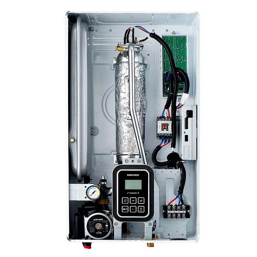 Электрический котел Navien EQB-06HW NEW (мощностью 6 кВт) предназначен для отопления помещений площадью до 60 м², с возможностью организации горячего водоснабжения через внешний бойлер .