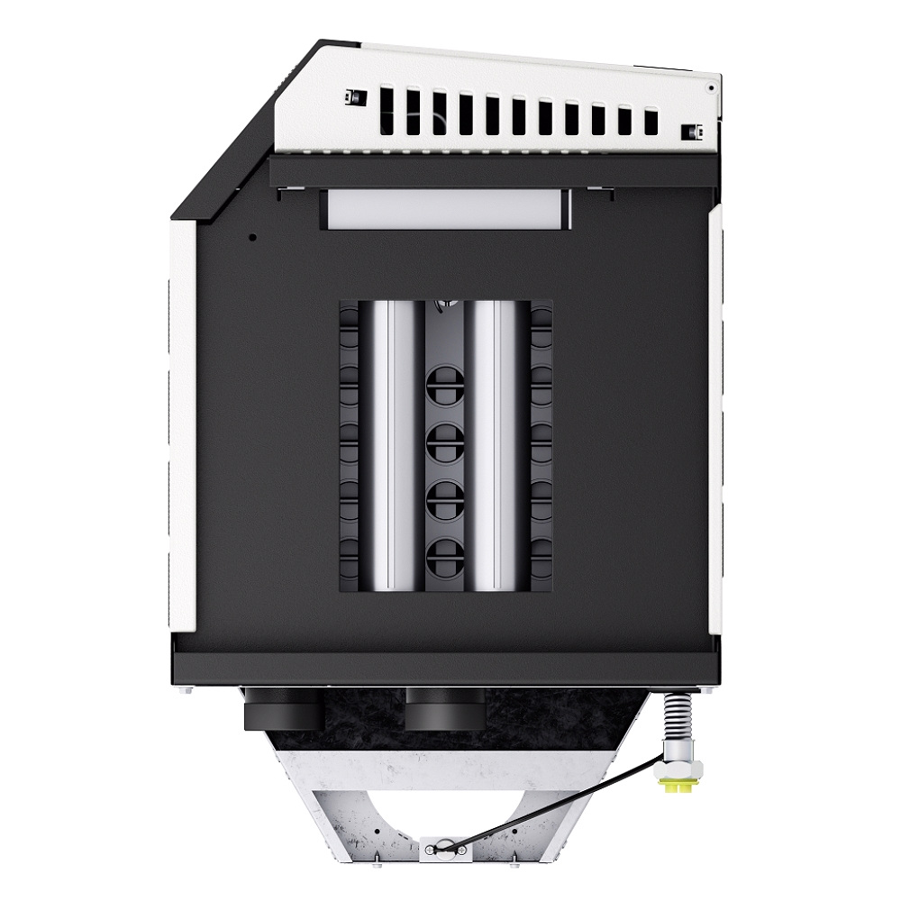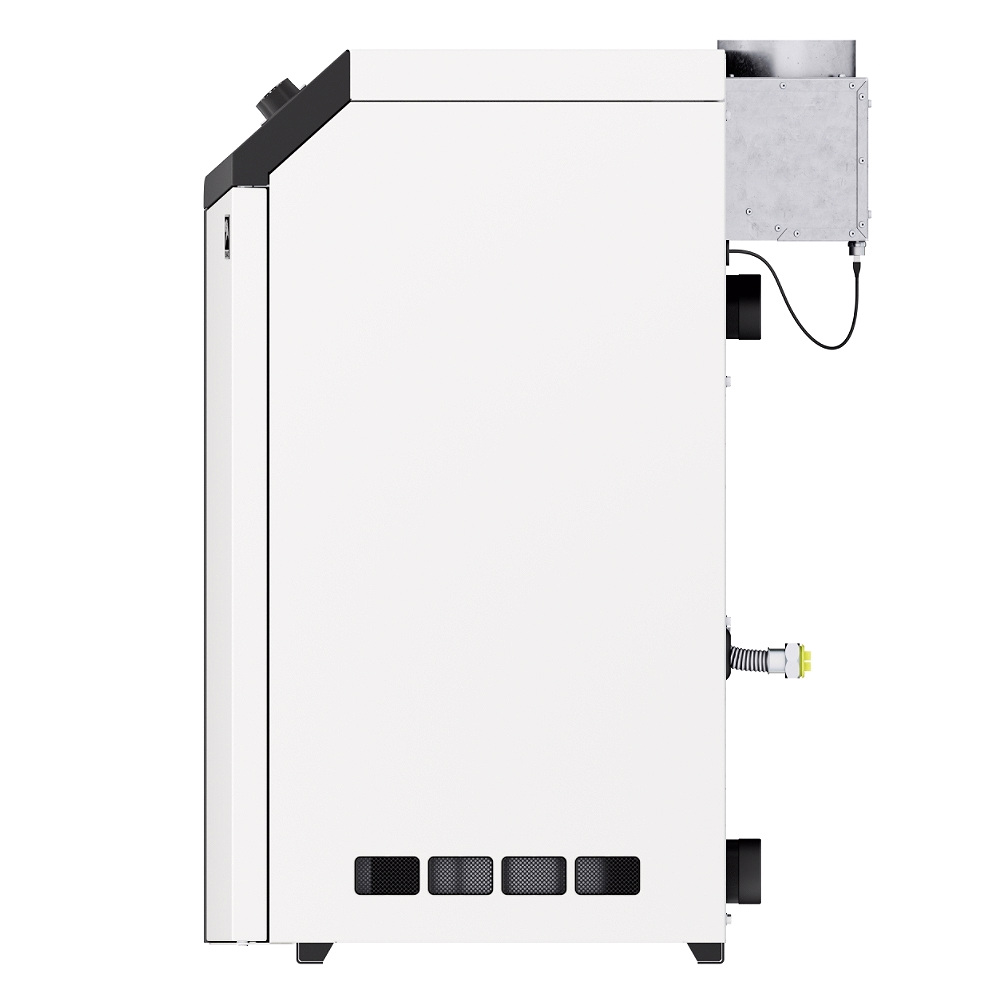 Устройство для подключения к системе отопления выполнено в виде резьбовых патрубков на задней поверхности котла.