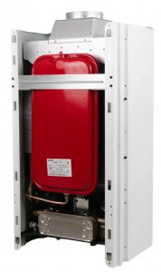 Встроенный пластинчатый теплообменник из нержавеющей стали обеспечивает быстрый и эффективный нагрев проточной воды для ГВС.