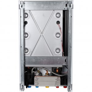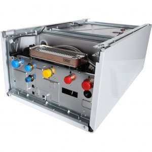 Вторичный теплообменник ГВС пластинчатый, изготовлен из нержавеющей стали. Это конструктивное решение особенно важно для регионов с жесткой водой, так как нержавеющая сталь устойчива к образованию накипи и значительно продлевает срок службы оборудования.