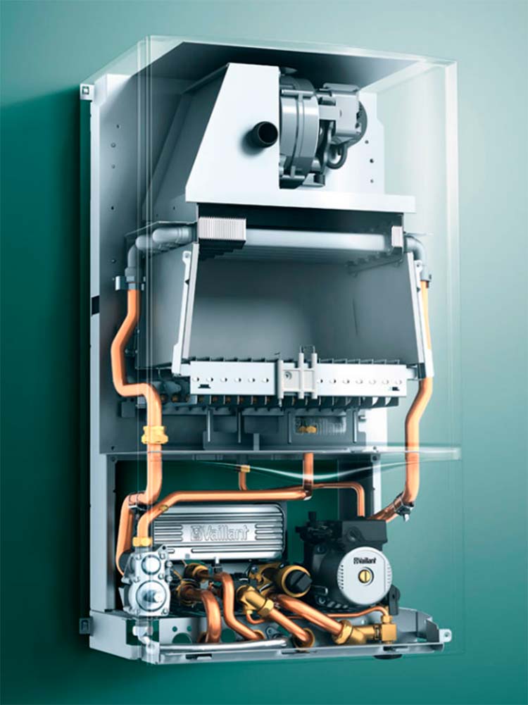 Работа по внешнему регулятору (eBUS): Поддержка цифрового протокола eBUS позволяет использовать регуляторы Vaillant для погодозависимого управления, недельного программирования и контроля температуры в помещении.