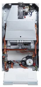 Первичный теплообменник выполнен из меди, что обеспечивает отличную теплопередачу, высокую устойчивость к коррозии и долговечность работы отопительного контура.